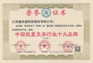 - 我們擁有多年抗震支吊架生產(chǎn)經(jīng)驗(yàn),獲多項(xiàng)國(guó)家專利、國(guó)家檢測(cè)機(jī)構(gòu)頒發(fā)檢測(cè)報(bào)告證書,我司生產(chǎn)的抗震支吊架是江西省住房和城鄉(xiāng)建設(shè)廳重點(diǎn)推廣產(chǎn)品,現(xiàn)有廠房、生產(chǎn)設(shè)備等固定資產(chǎn)投資過(guò)億。